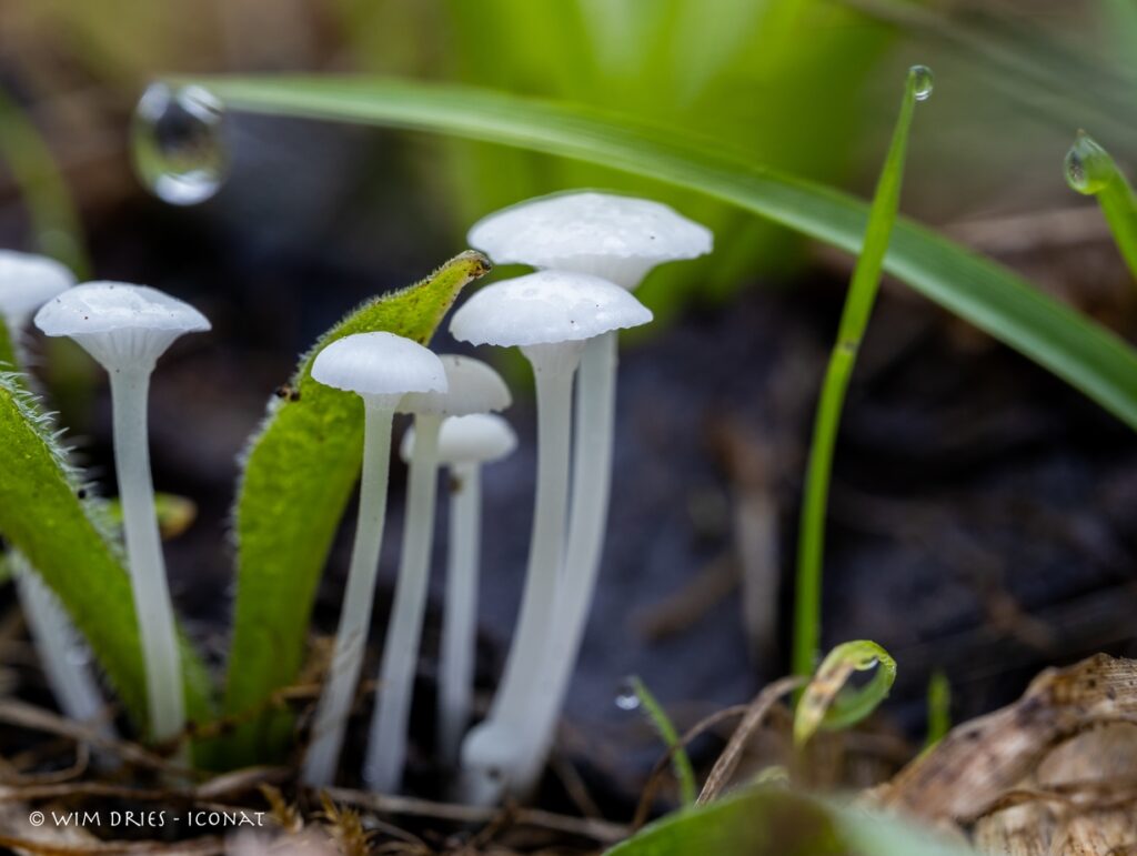 Smeerwortelmycena, Hemimycena candida, Parkbos, De Pinte BE
